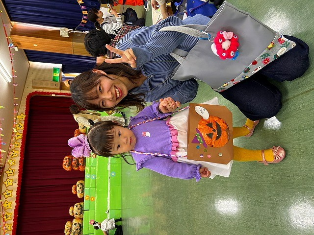 お友達もお家の方も、かわいい仮装で大集合!まずは、親子でハロウィンバック作り