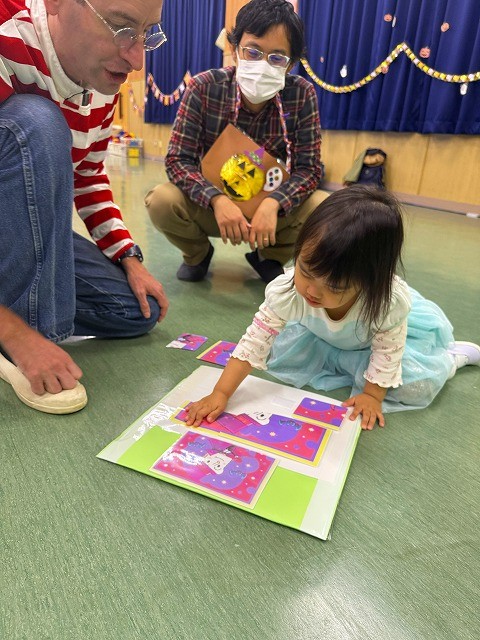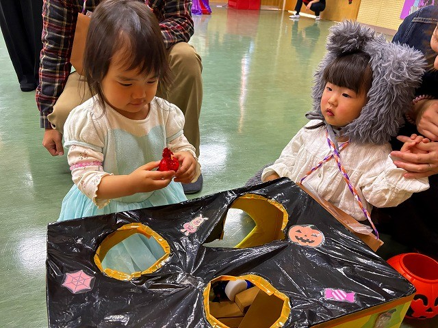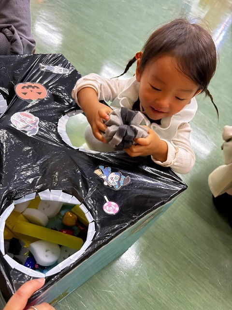 ハロウィンの雰囲気を楽しみながら、アンパンマンのパズルやキャンディーを探すゲーム、かぼちゃを積んだりアンパンマンの仲間達にお菓子を食べさせたり楽しい時間を過ごしました![]()