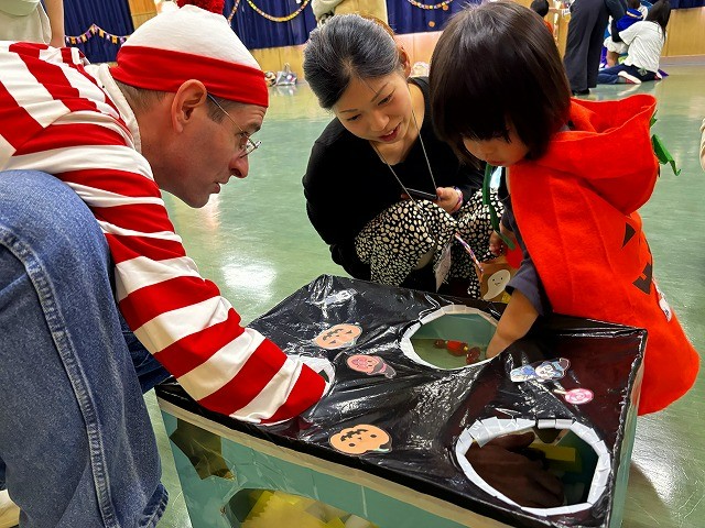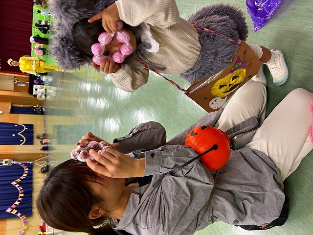 最後には、デイビッド先生ウォーリーからお菓子のプレゼントです。「Trick or Treat!(お菓子をくれなきゃ、いたずらするぞ)」と、少し難しい言葉にも挑戦して、ハロウィンを楽しむ事ができました。