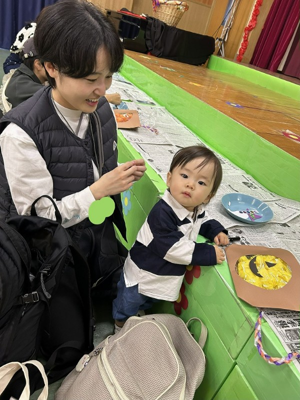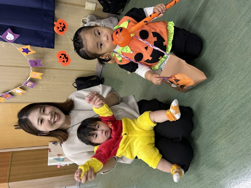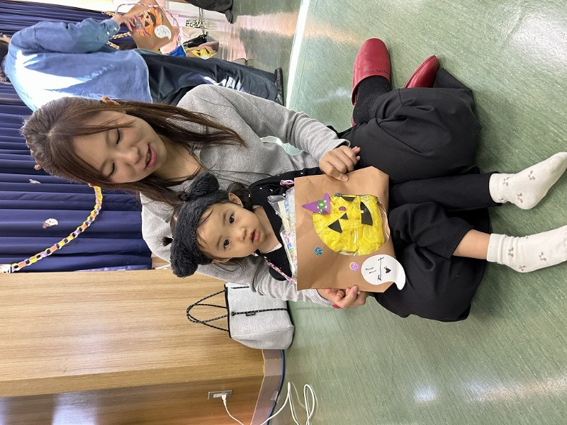 お友達もお家の方も、かわいい仮装で大集合!まずは、親子でハロウィンバック作り
