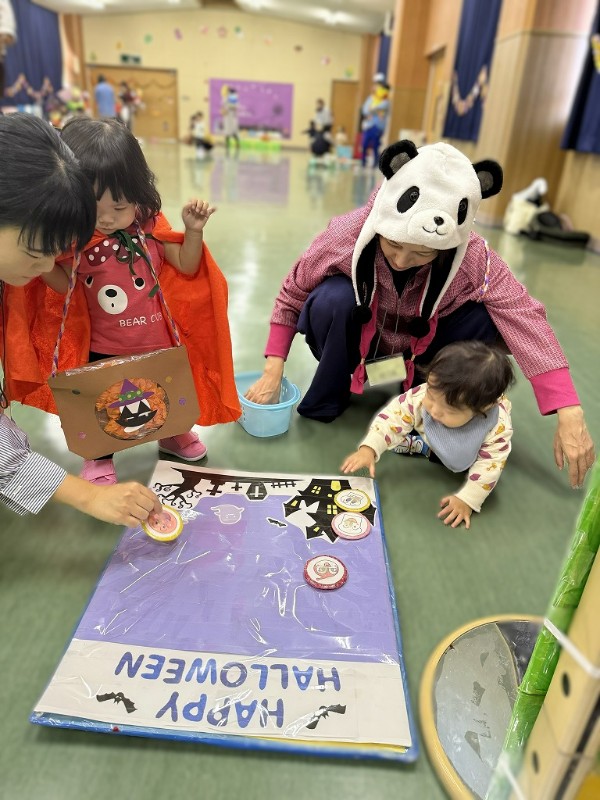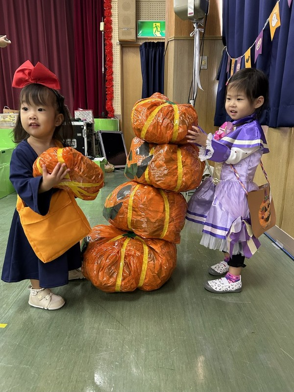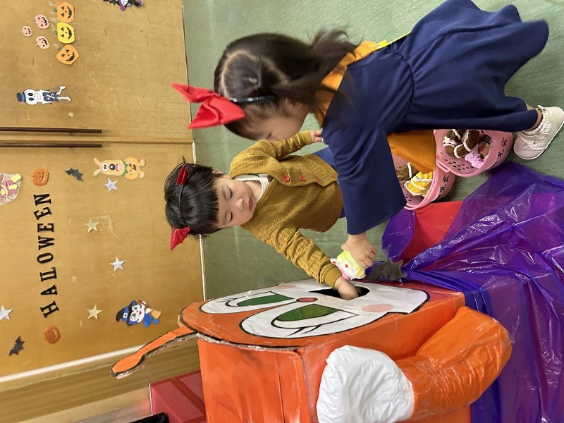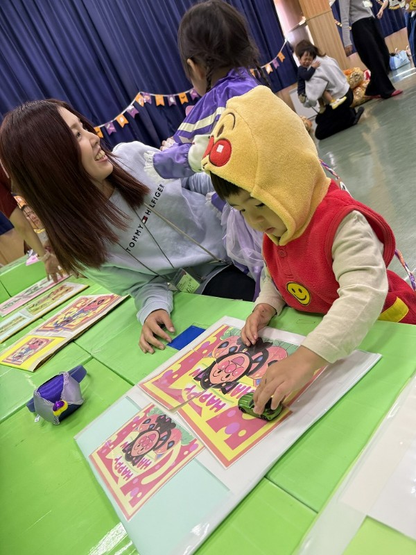 ハロウィンの雰囲気を楽しみながら、アンパンマンのパズルやキャンディーを探すゲーム、かぼちゃを積んだりアンパンマンの仲間達にお菓子を食べさせたり楽しい時間を過ごしました![]()