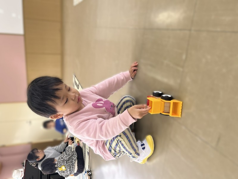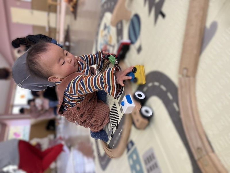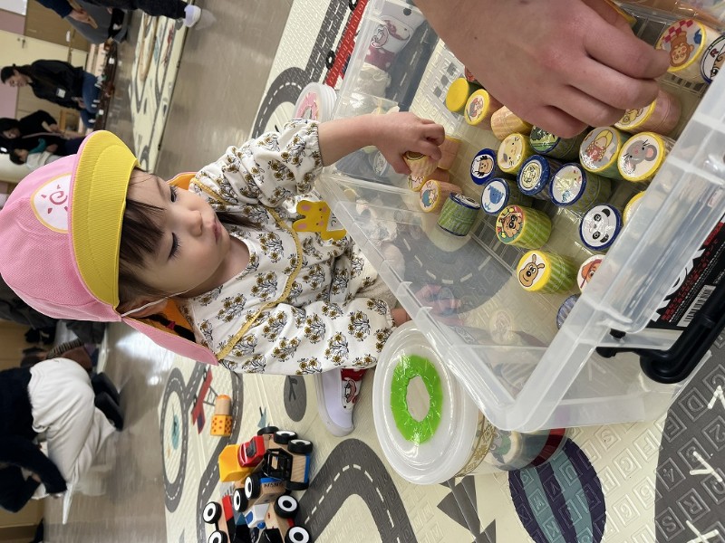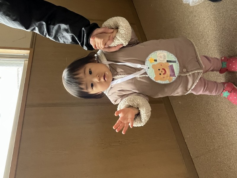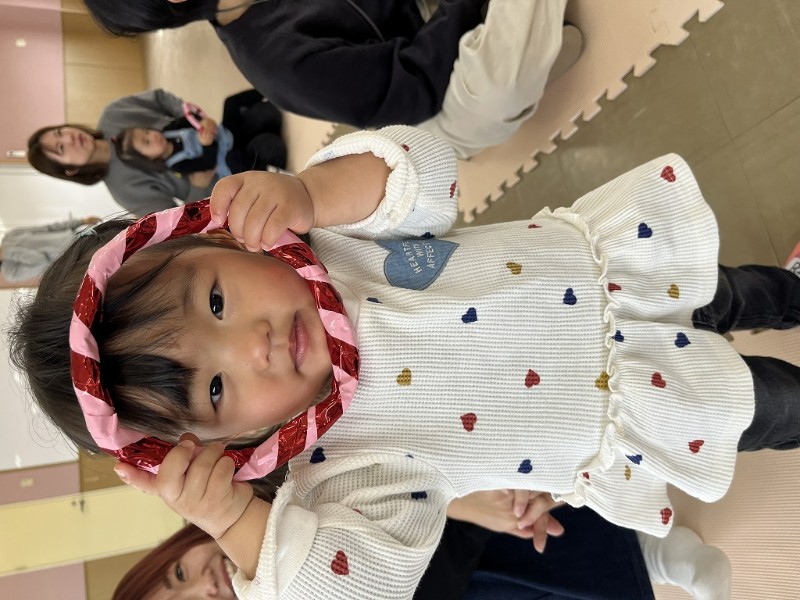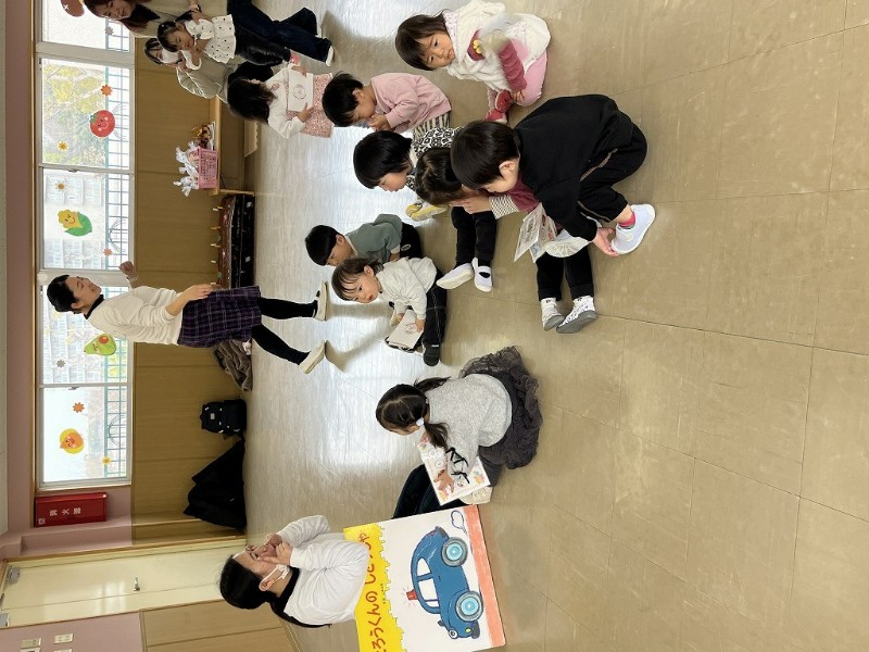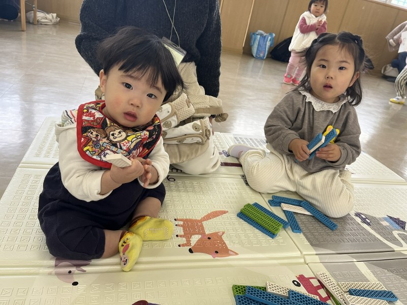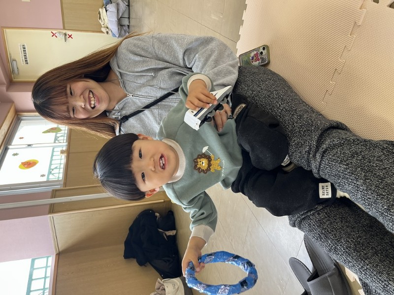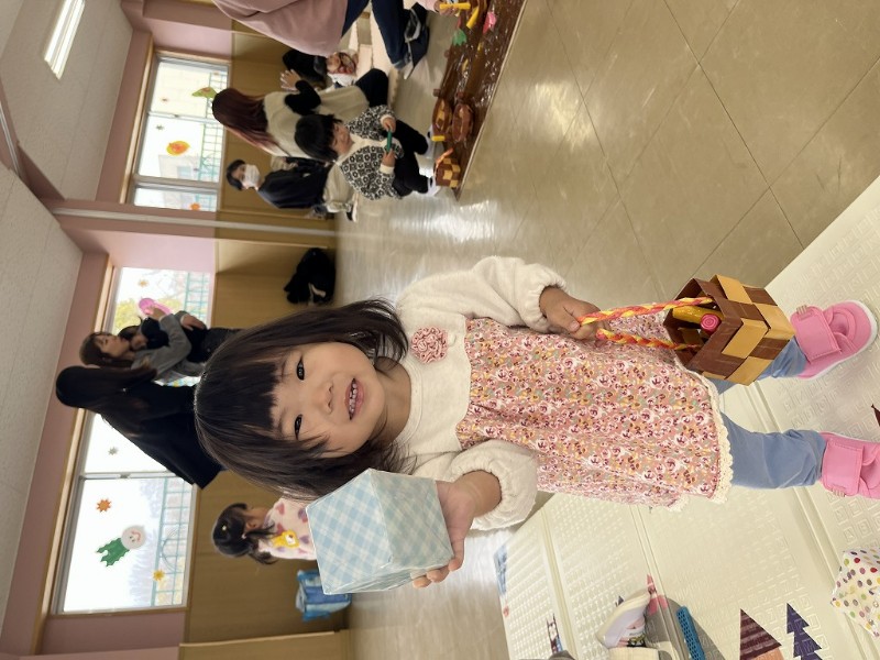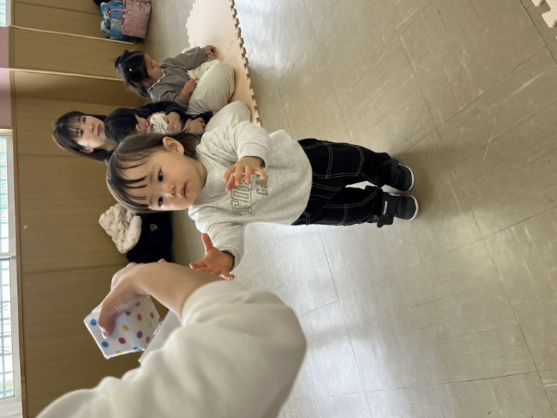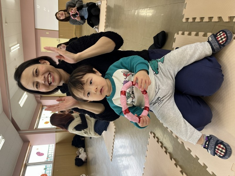修了式ということもあり、保護者の方には“お茶会”を企画しました。子ども達はその間大丈夫かなと少し心配もありましたが、お家の方から離れて自分の好きな遊びを楽しそうに遊ぶ姿に嬉しく思いました。又、“バスにのって”のリズム遊びでは、ハンドルを持って「出発~!」の声に合わせて、お家の方に身体を揺らしてもらったり、音楽に合わせてノリノリで楽しんでいる姿が見られましたよ![]()
