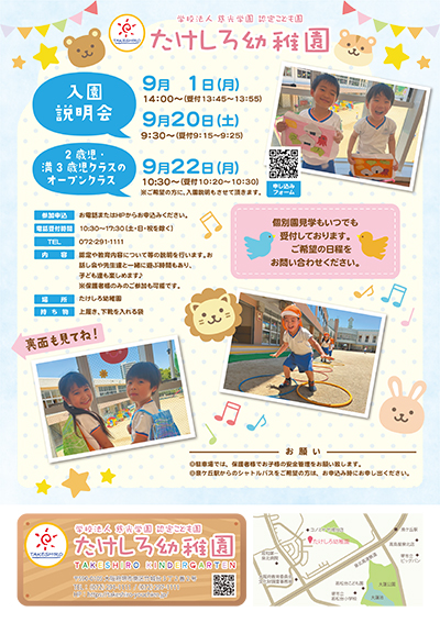 学校法人 慈光学園 たけしろ幼稚園では2016年4月より幼保連携型認定こども園へ移行致しました。